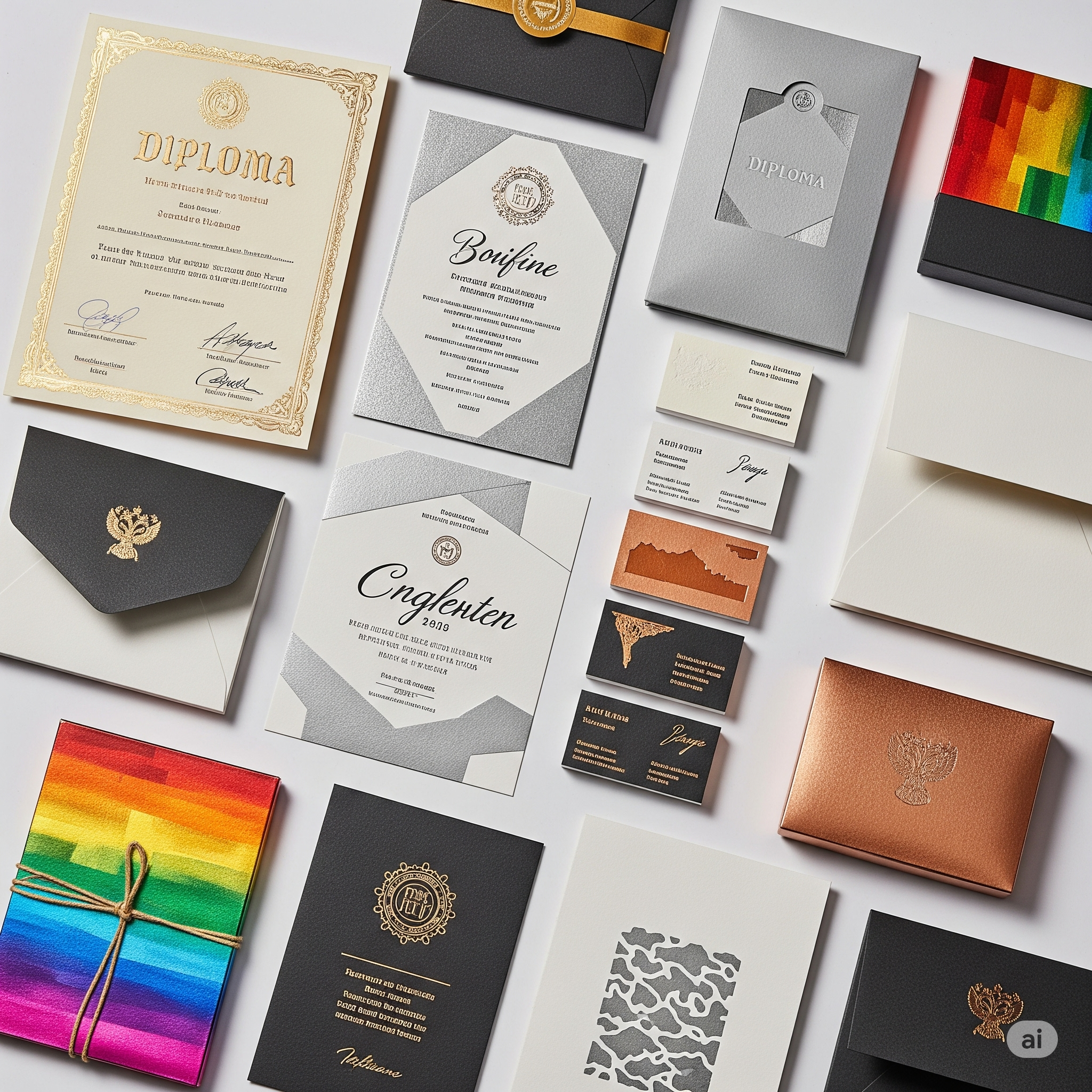 Amplop personal custom dengan nama atau logo ber-foil sesuai permintaan. Menambah kesan eksklusif pada surat atau undangan.